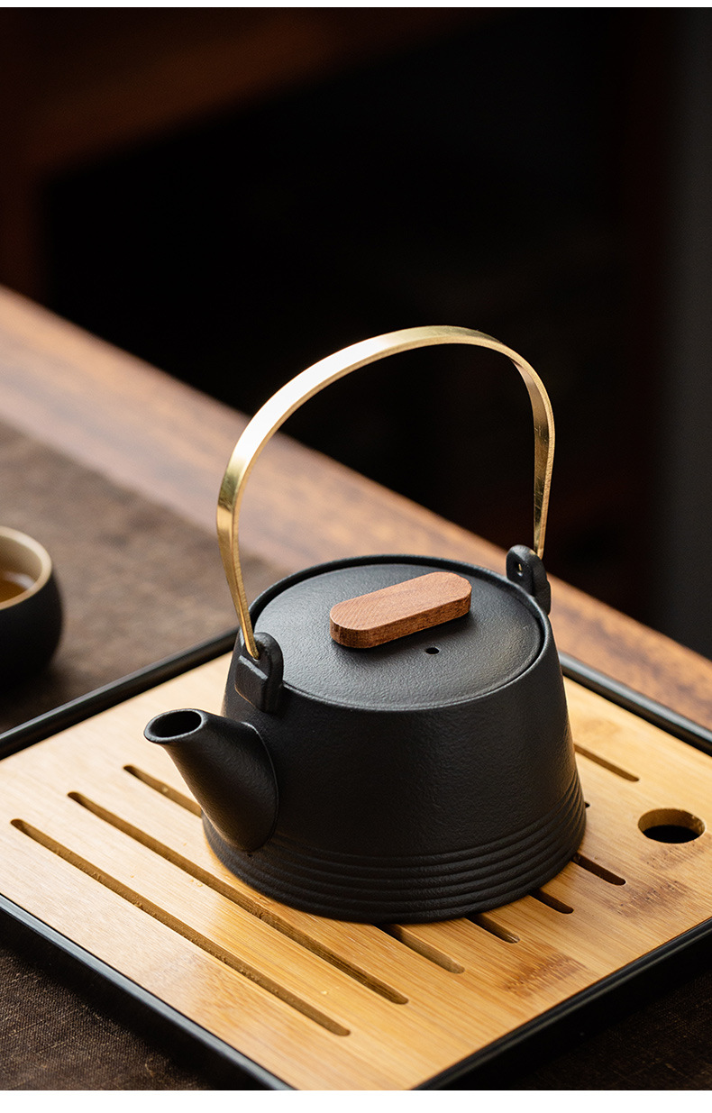 Color: 1Set: black pottery handle pot, one pot and four cups + tea tray,