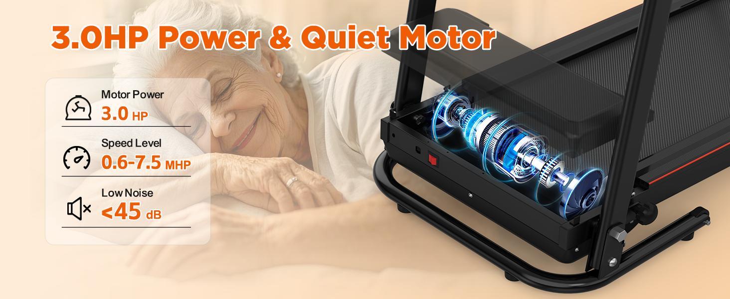 Quite Powerful Motor & Multiple Speeds:Home portable treadmill has a 3.0 HP motor which provides strong, stable power and quiet operation. Whether you're at home, in an apartment, you can enjoy a smooth and comfortable running experience. Treadmills machine speed range:0.5-7.5MPH. It is suitable for both young people running and elderly people walking.