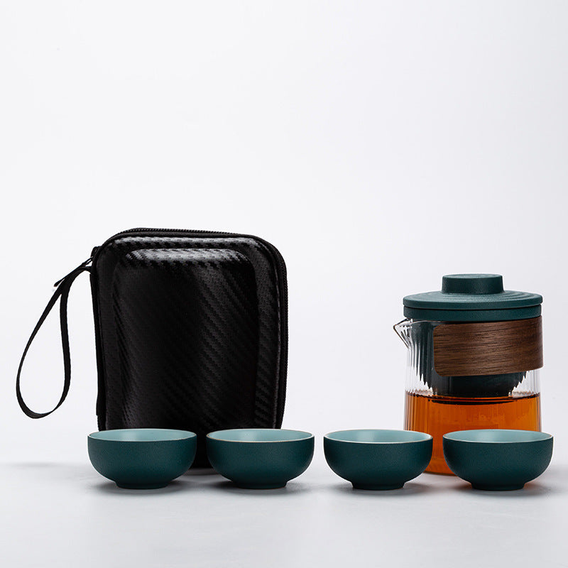 Glass Kuai Ke Cup One Pot Four Cups With Tea Caddy Portable Travel Tea Set