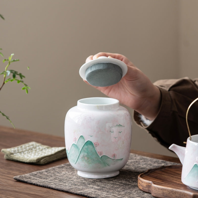 Hand Painted Landscape Ceramic Tea Pot Large Storage Sealed