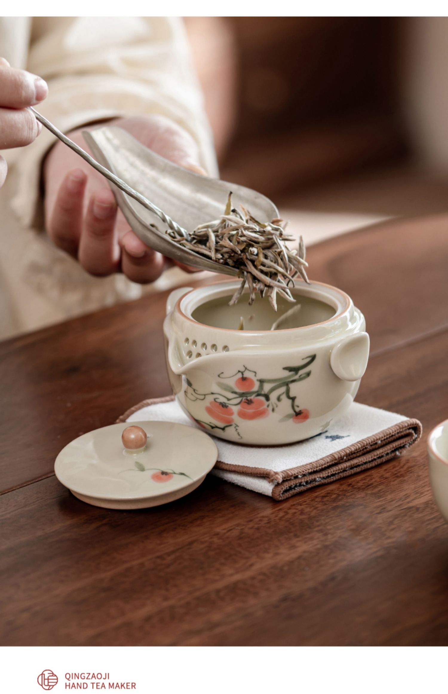 Color classification: One pot and one cup of hand-painted Shishi Ruyi Kuai Ke Mug in wood ash, one pot and two cups of hand-painted Shishi Ruyi Kuai Ke Mug in wood ash, set of hand-painted Shishi Ruyi Kuai Ke Mug in wood ash