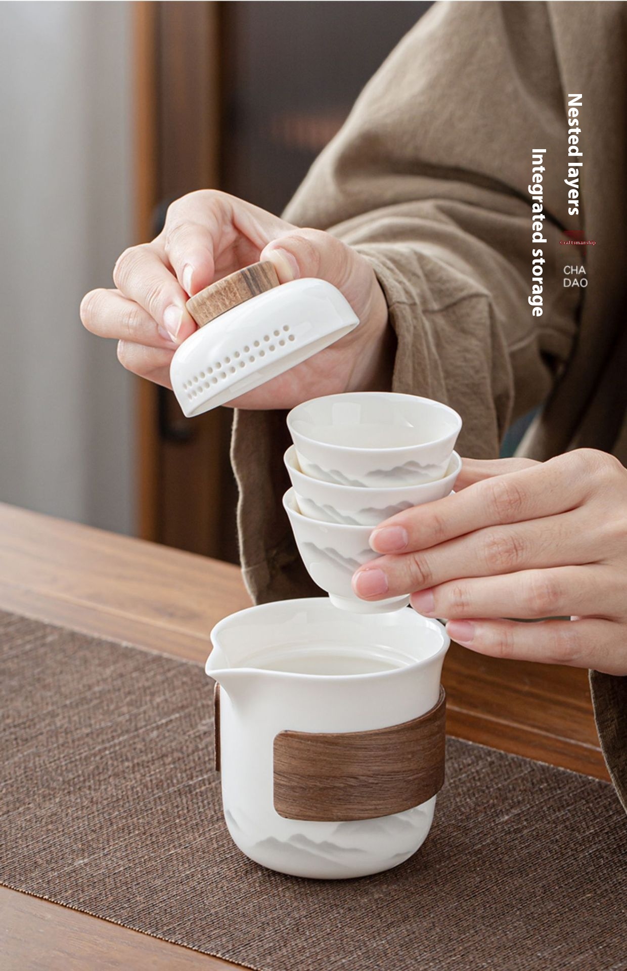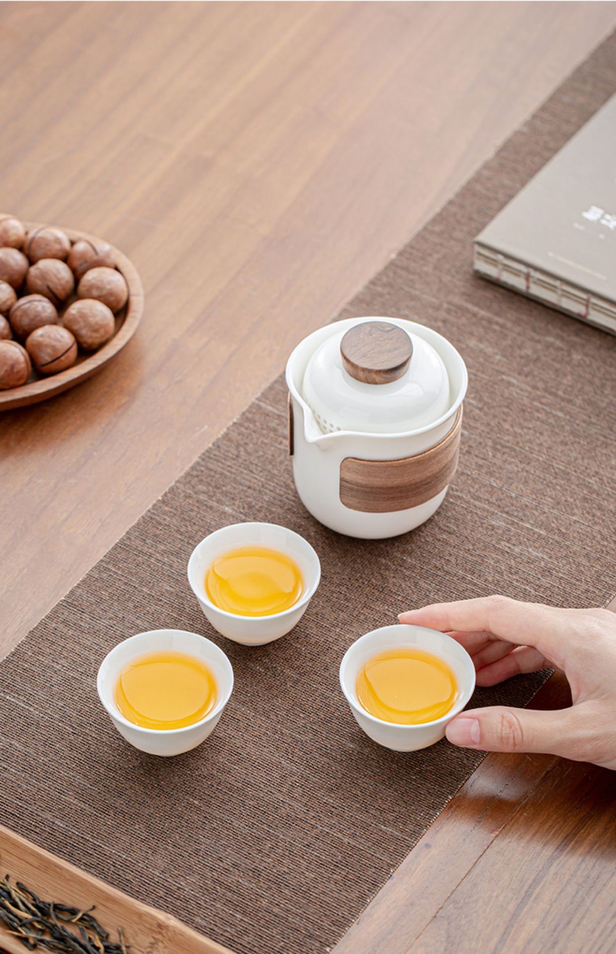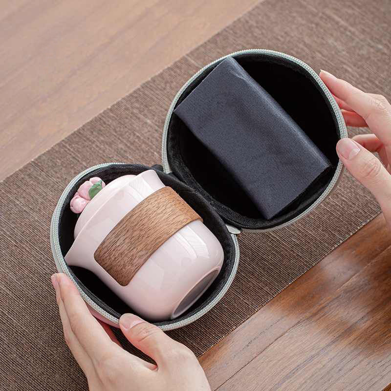 White Porcelain Pinch Flower One Pot Fills Three Cups Outdoor Camping Tea Anti-scald Pot Portable Travel Tea Set