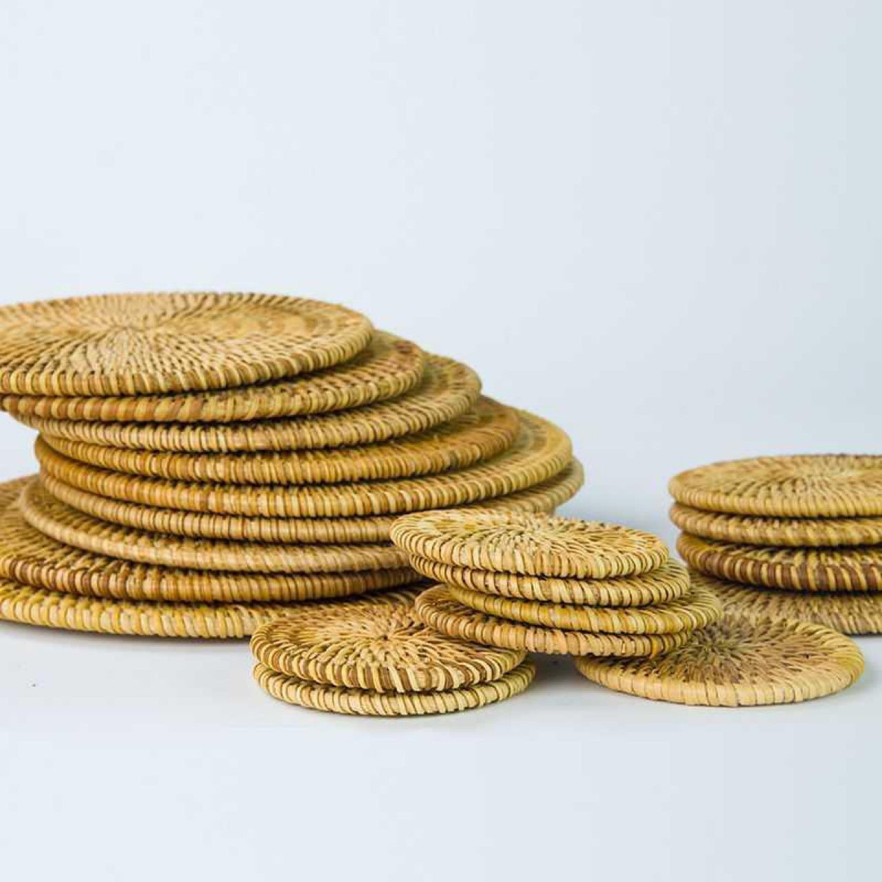 Woven Vietnamese Rattan Coaster, Bamboo Tea Mat, Table Mat, Potholder, Teacup Pot Mat, Placemat, Tea Ceremony Tea Set